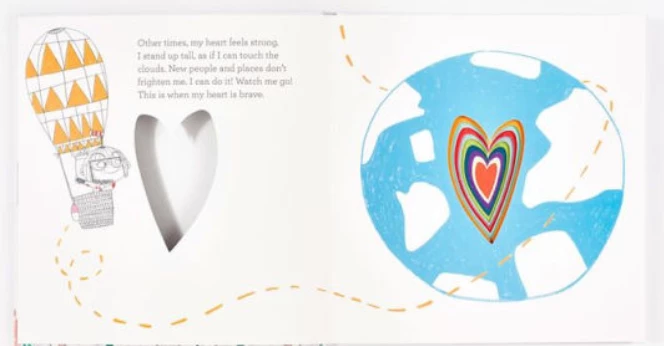 Happiness, sadness, bravery, anger, shyness . . . our hearts can feel so many feelings! Some make us feel as light as a balloon, others as heavy as an elephant. In My Heart explores a full range of emotions, describing how they feel physically, inside. With language that is lyrical but also direct, toddlers will be empowered by this new vocabulary and able to practice articulating and identifying their own emotions. With whimsical illustrations and an irresistible die-cut heart that extends through each spread, this unique feelings book is gorgeously packaged.