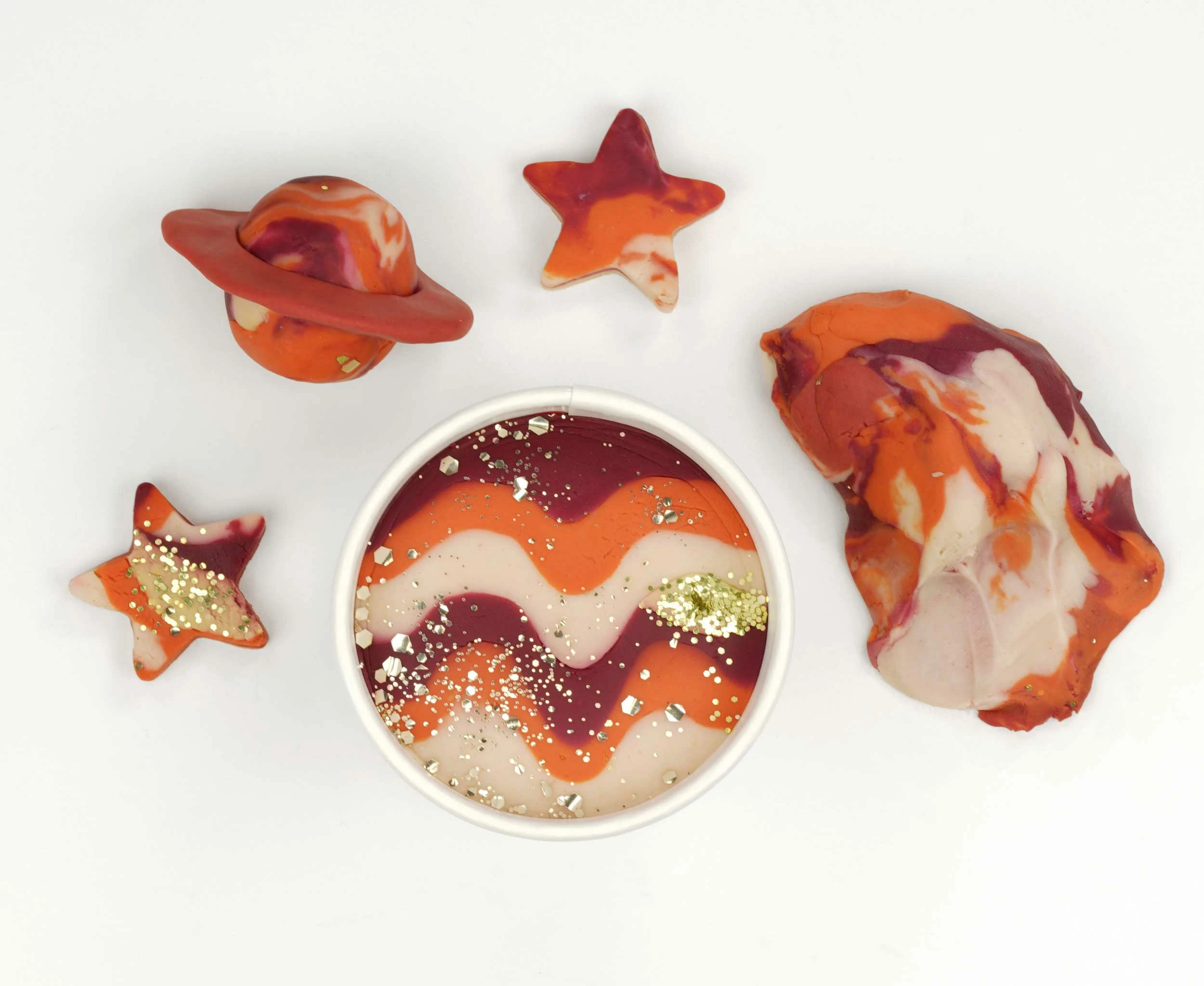- All-natural dough and colors, compostable glitters, and calming essential oils
