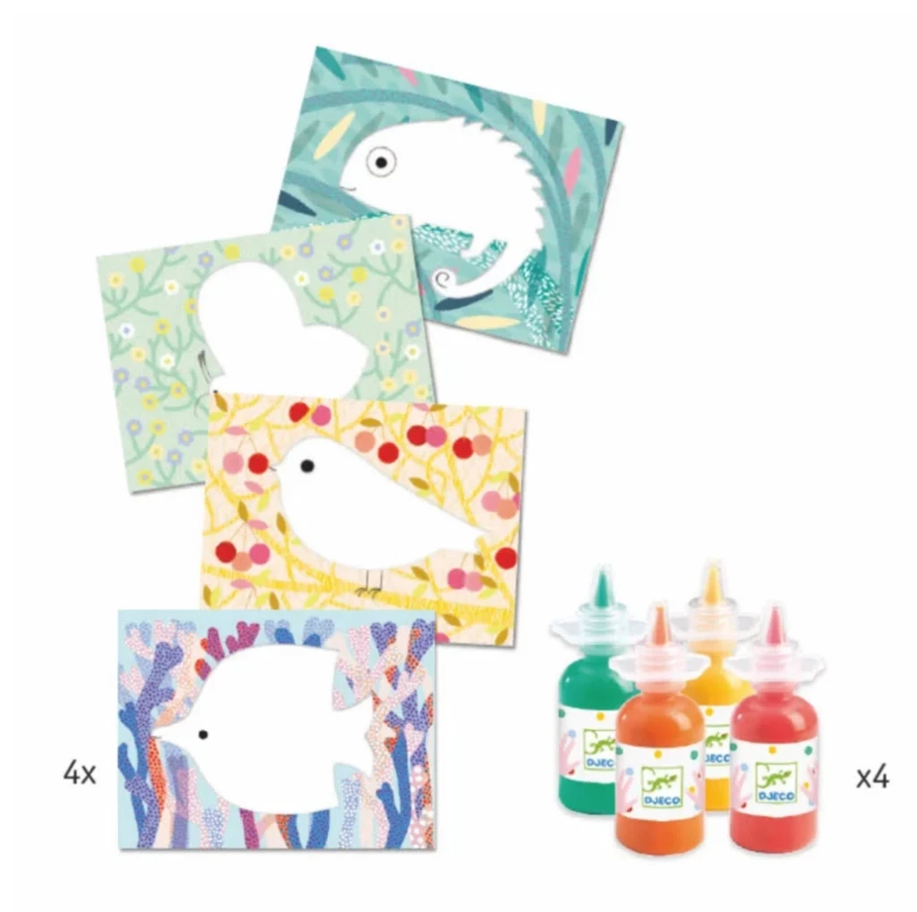 “Paint” through a reusable screen that washes clean with water. Simple to use, simple to put away, it’s the perfect choice for those who are just making their entry into the world of artistic creation.
