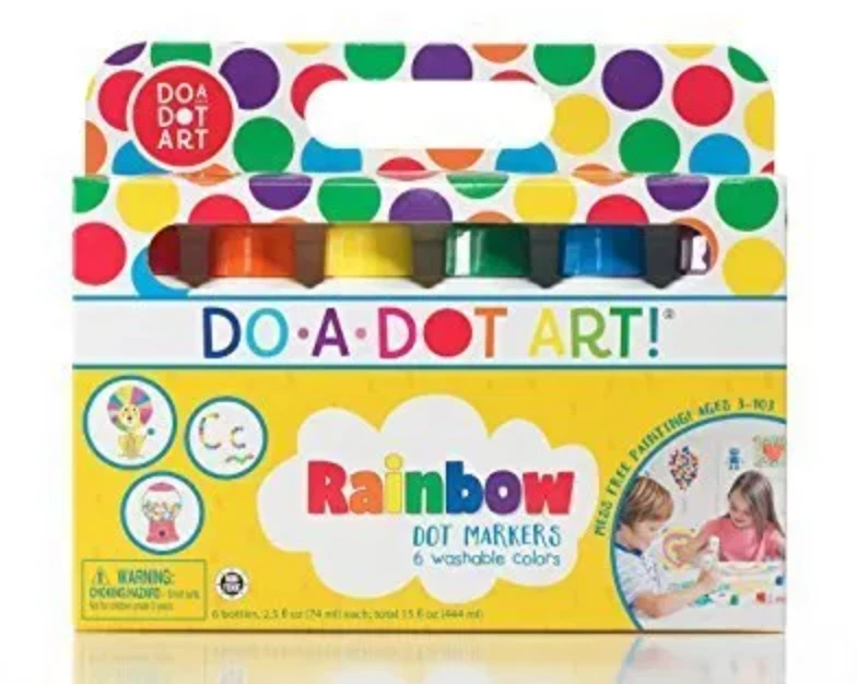 Do·A·Dot Art ® is easy to use, there are no cups or brushes to set up or clean up, no drips or spill and the product won’t dry out if the cap is left off. Our special formula will provide hours of self expression as children blend colors to create new and exciting colors. 6 beautiful colors in the set. Mess free painting for kids ages 3+.