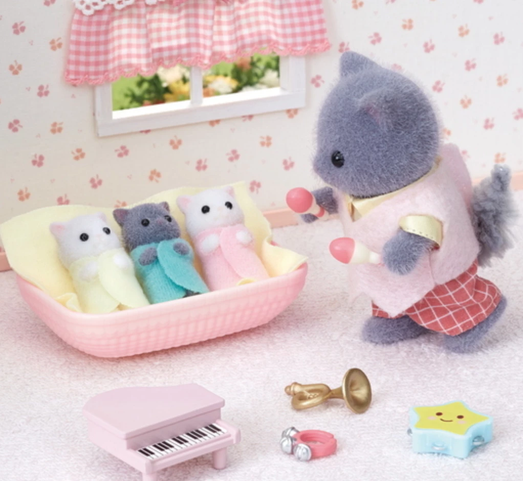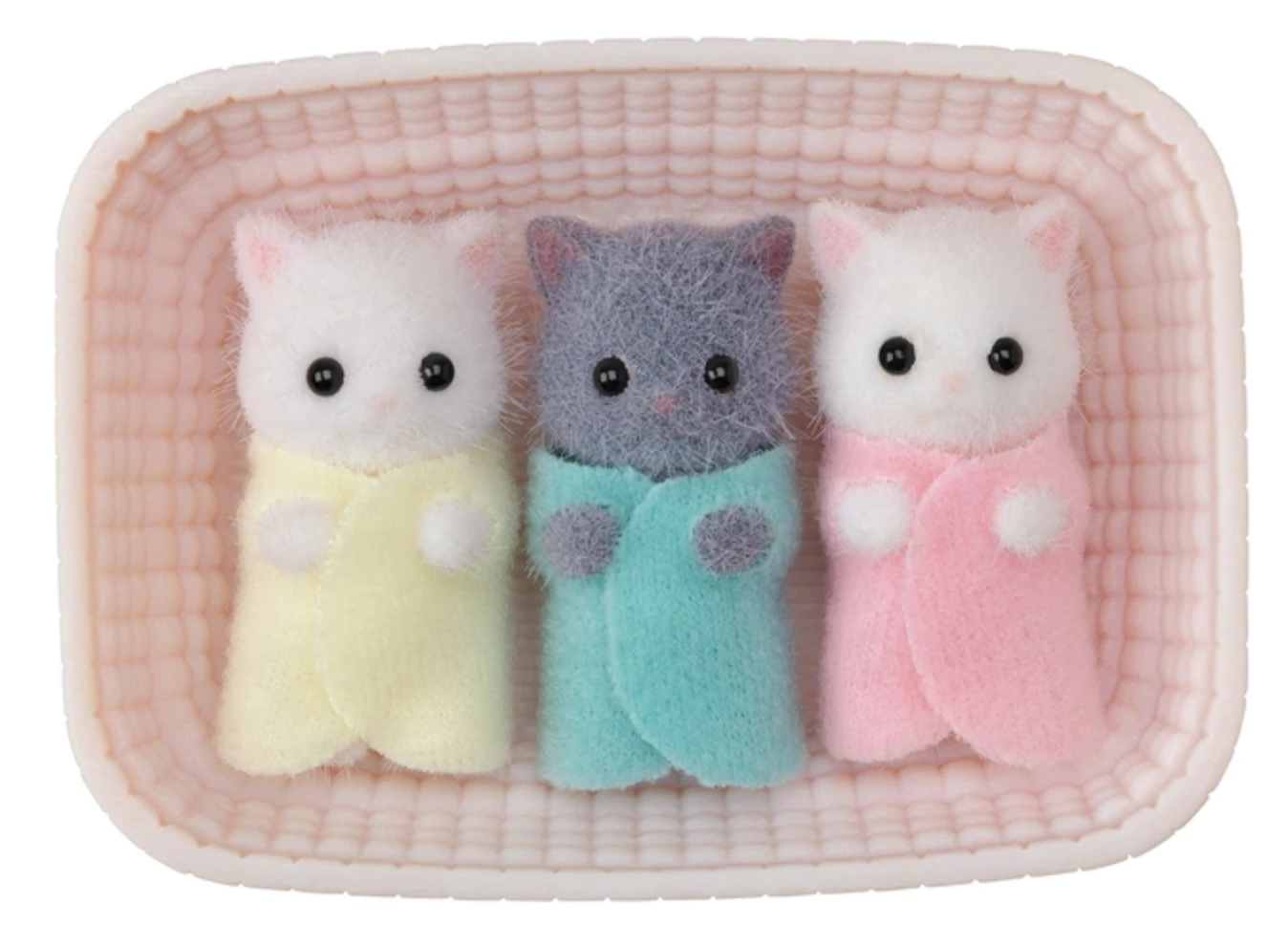 Persian Cat Triplets contains cute and tiny triplet figures. The figures’ heads can move. Includes the Persian Cat Triplets and a cradle.
