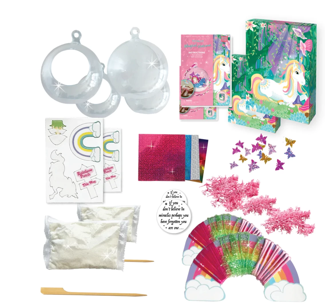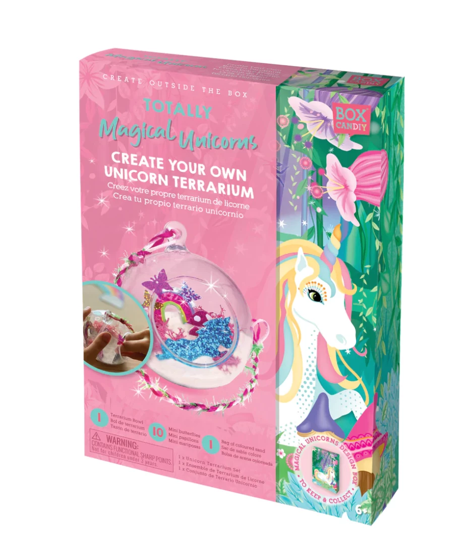 Enter the enchanted land of unicorns with the BOX CANDIY® Totally Magical Unicorns Create Your Own Unicorn Terrarium set! This magical set has everything needed to build your very own mini unicorn rainbow world.