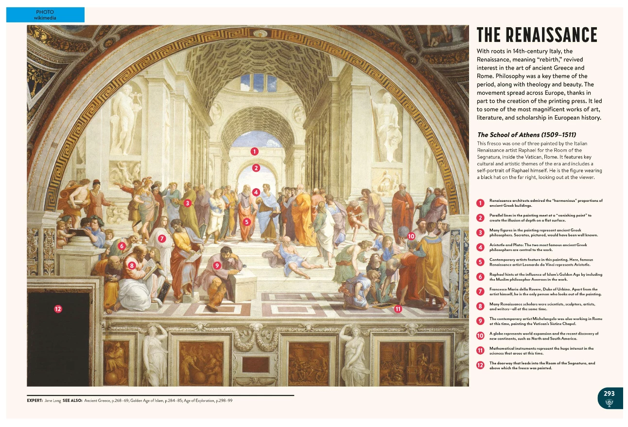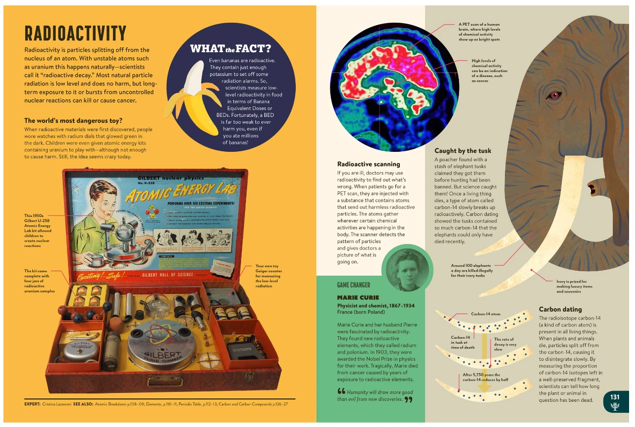 Unlike old encyclopedias that are structured from A to Z, this encyclopedia takes you on a journey from the beginning of time to the present day – and even into the future! It explores a wide range of topics and is divided into eight chapters by subject: Universe, Earth, Matter, Life, Humans, Ancient & Medieval Times, Modern Times, and Today & Tomorrow.