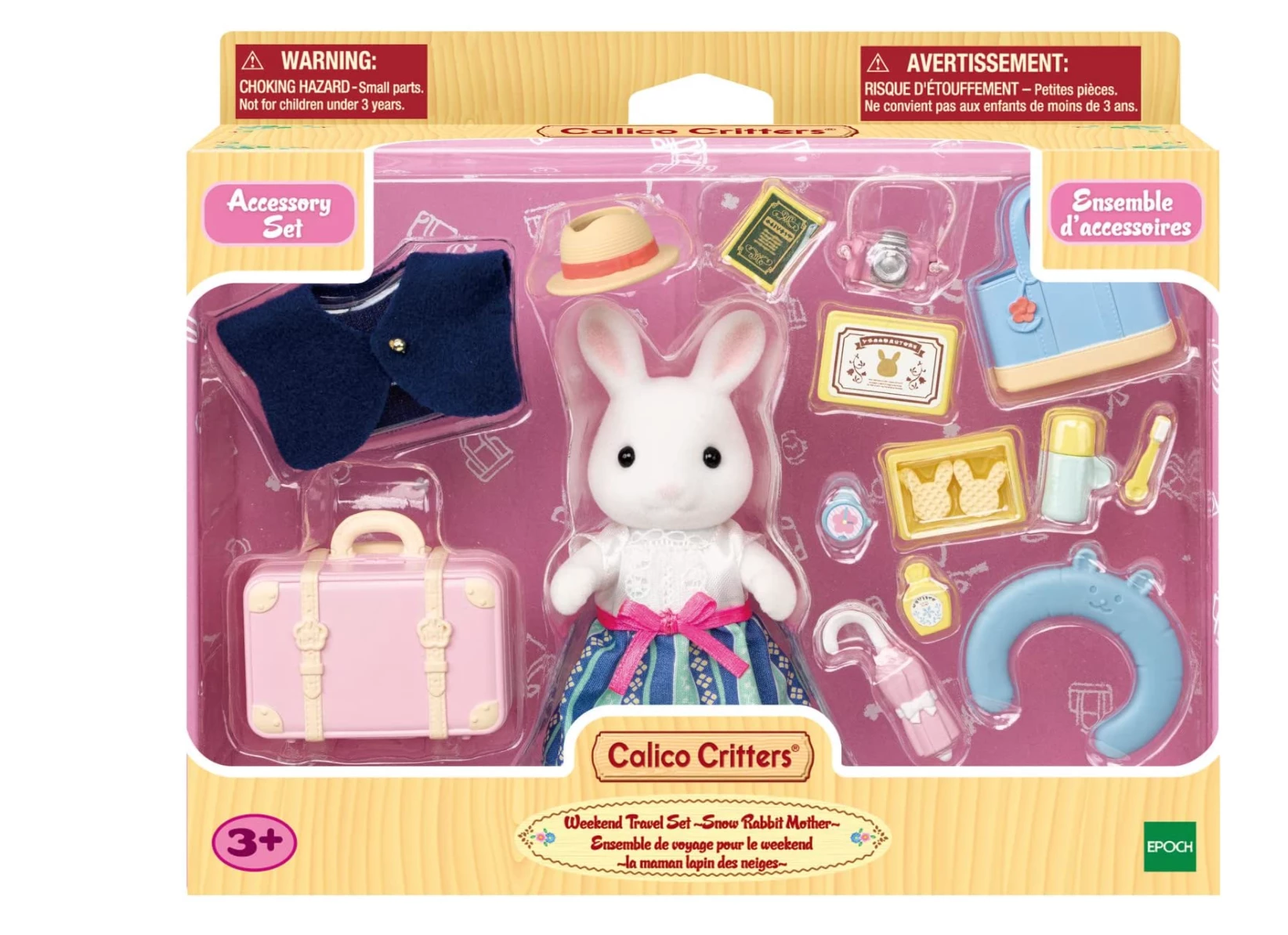 - Ready to play set includes poseable Snow Rabbit mother figure dressed in removeable clothing along with 17 accessories for a weekend getaway!