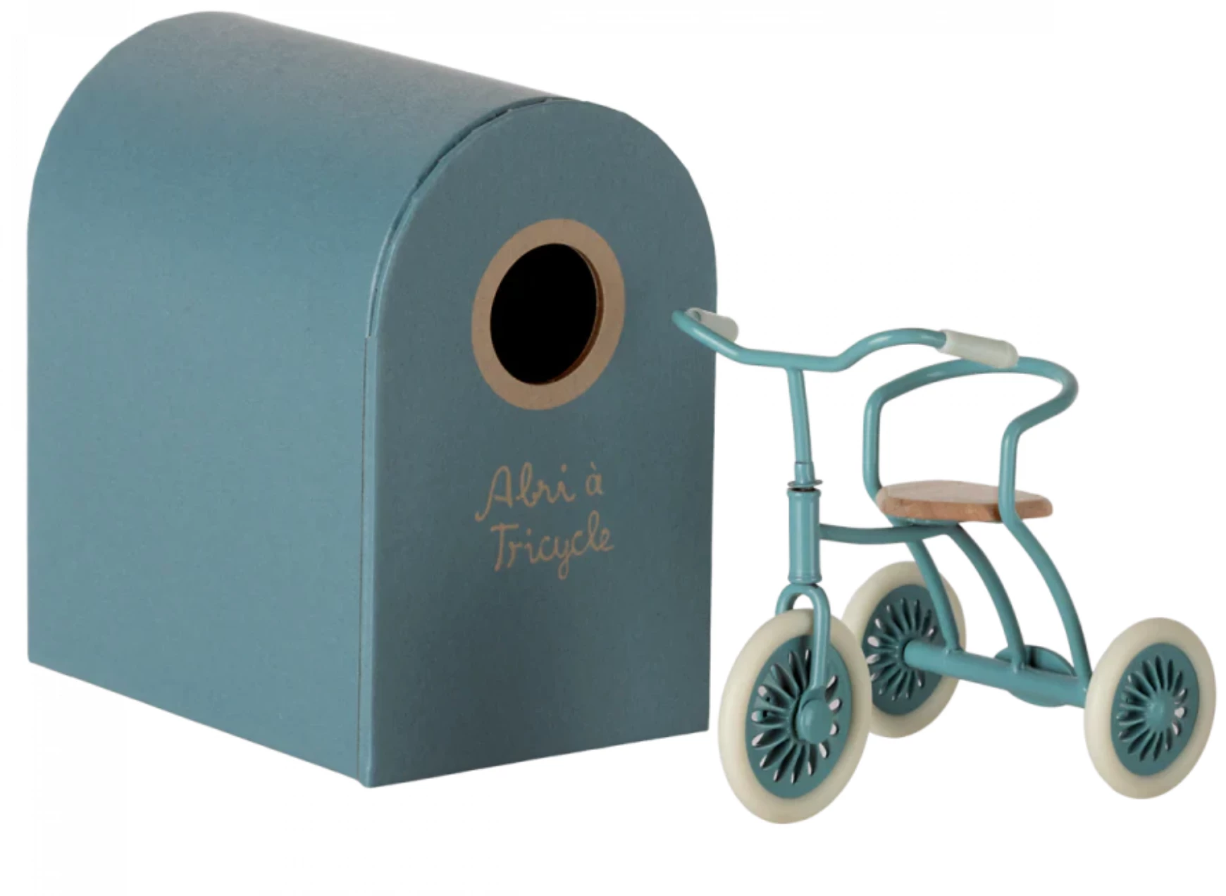 Our tricycles are made of metal and have wooden seats that are beautifully shaped. The bikes arrive in decorative boxes that can be used as bike sheds. Our mice friends with magnetic hands can hold onto the handlebars perfectly.