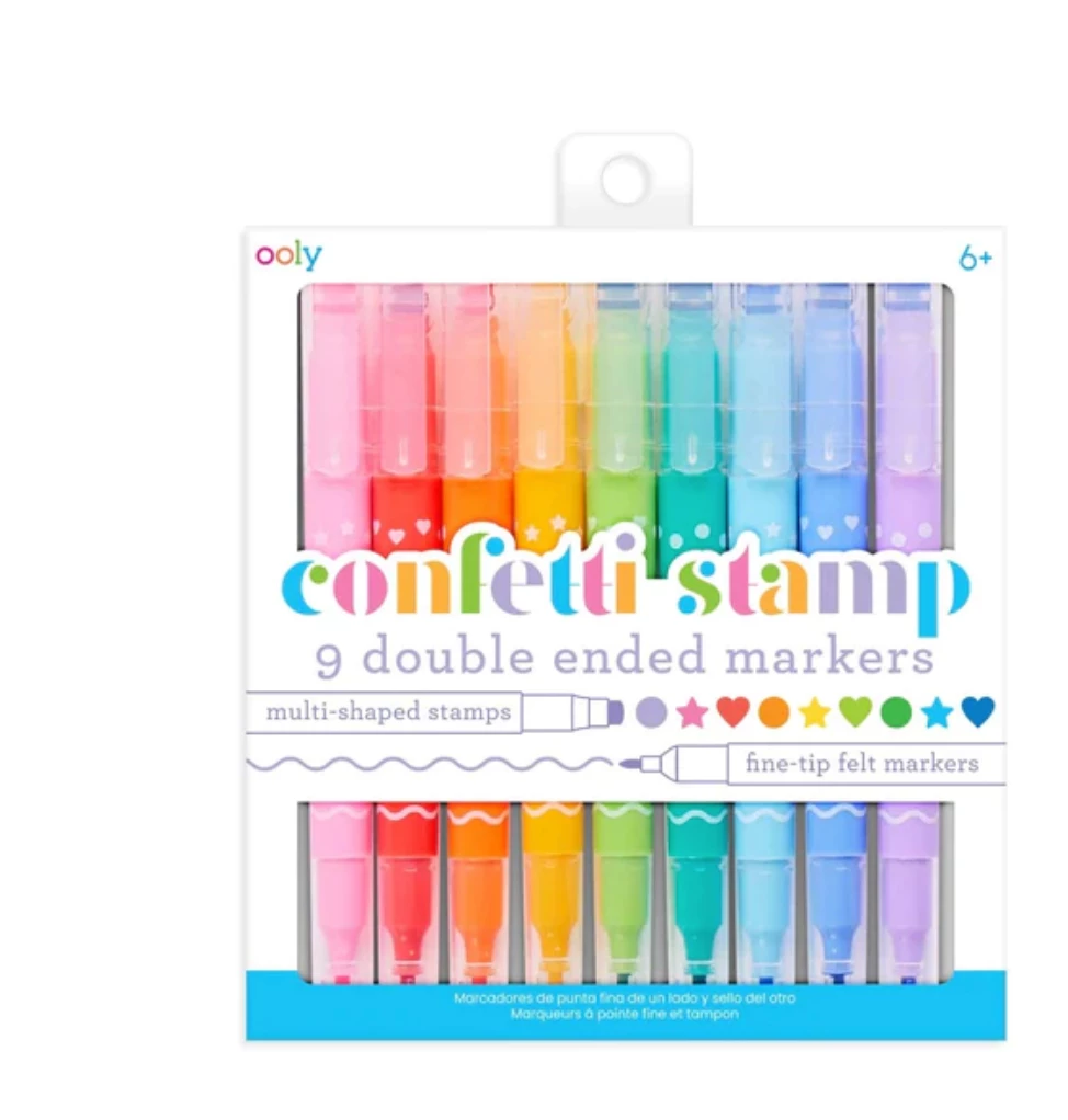 These double ended markers feature a fine felt tip on one side and a confetti shaped stamp on the other! Decorate your planner, journal, snail mail, and more!