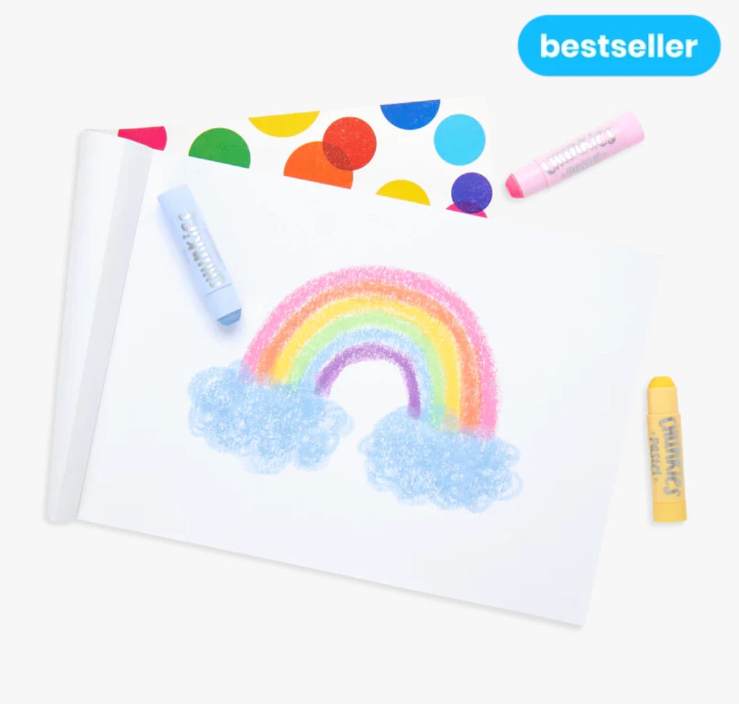 This paper sketchbook is filled with 60 sheets of sturdy, art-ready paper. No matter the medium – crayons, paints, colored pencils, or Chunkies Paint Sticks – this thick paper sketchbook can handle whatever your little artist throws at it, as they explore their creativity.