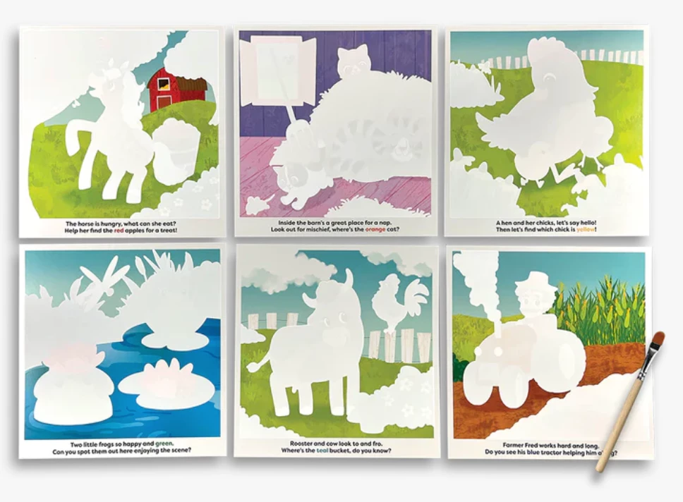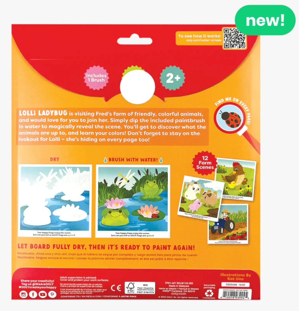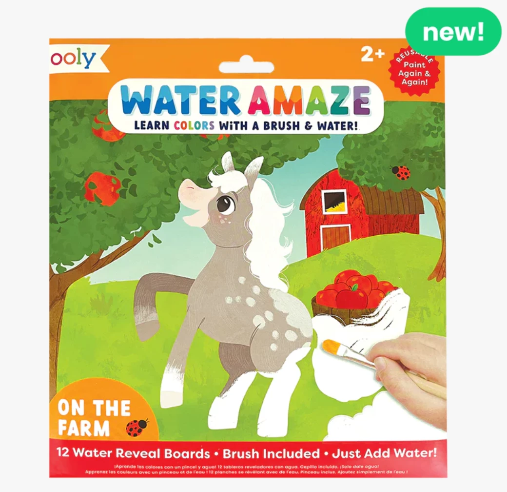 OOLY’s Water Amaze water reveal boards bring life on the farm into full color! Made with 12 reusable reveal boards that can be colored in again and again, this kit is a wonderfully entertaining activity. You provide the water, we’ll provide the rest.