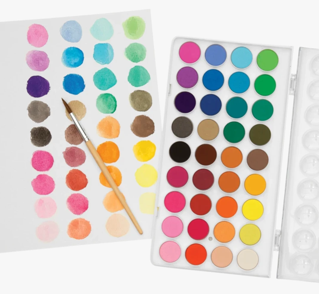 36 beautiful colors will inspire the artist in you. The paint is washable, so if you spill it won’t stain. The cover doubles as a paint palette for mixing, paint brush included.