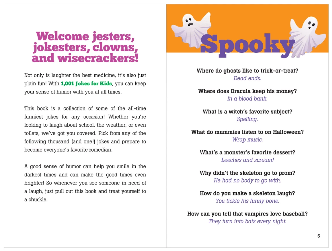 - 1,001 family-friendly jokes for kids of all ages.
