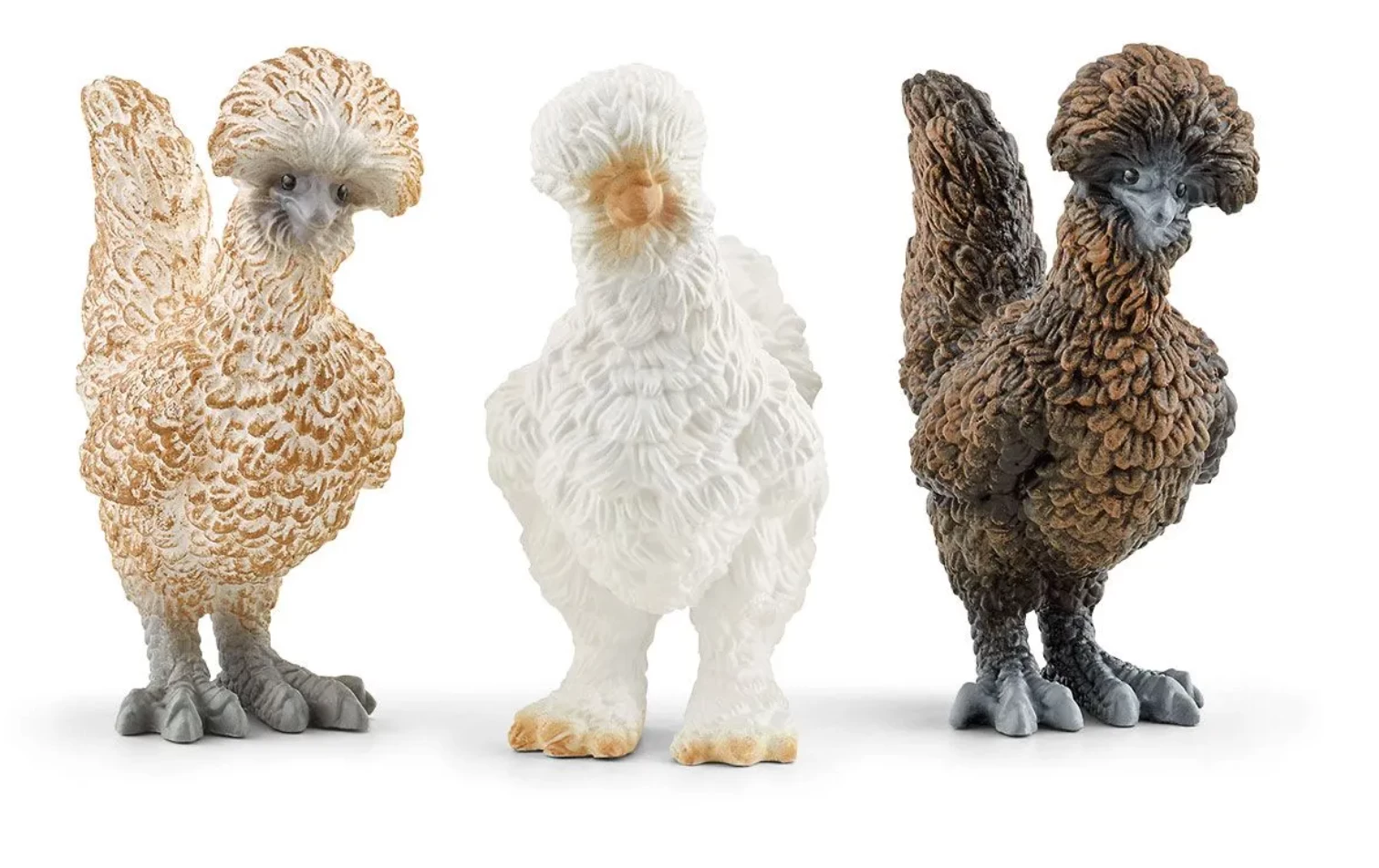 Cluck, cluck, we’re all in luck! It’s the Chicken Friends! These three fine-feathered friends are peck, peck, pecking their way into Schleich Farm World by popular demand. Includes two different Polish chickens and a Silkie chicken.