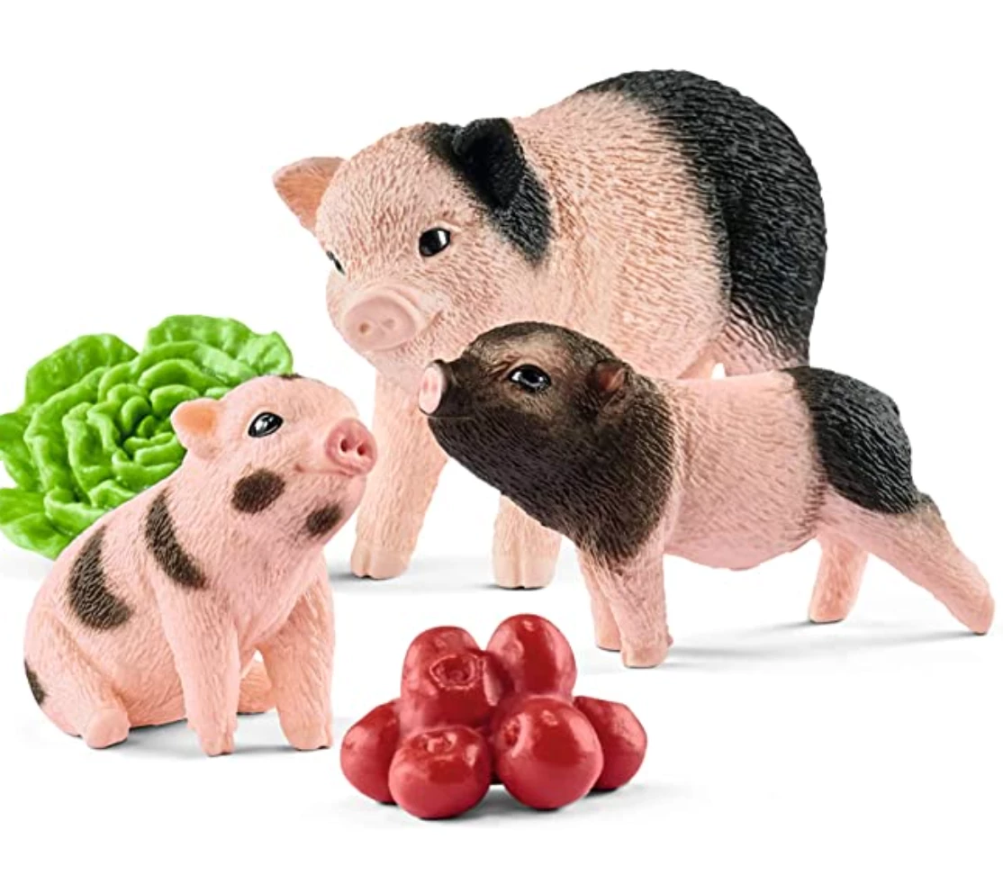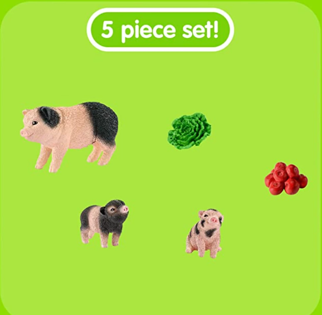 Beautifully designed with astonishing attention to detail, this lovely pig mother and her two adorable piglets will instantly melt the heart and inspire hours of charming pretend-play. The set even comes with a batch of apples and a head of lettuce!