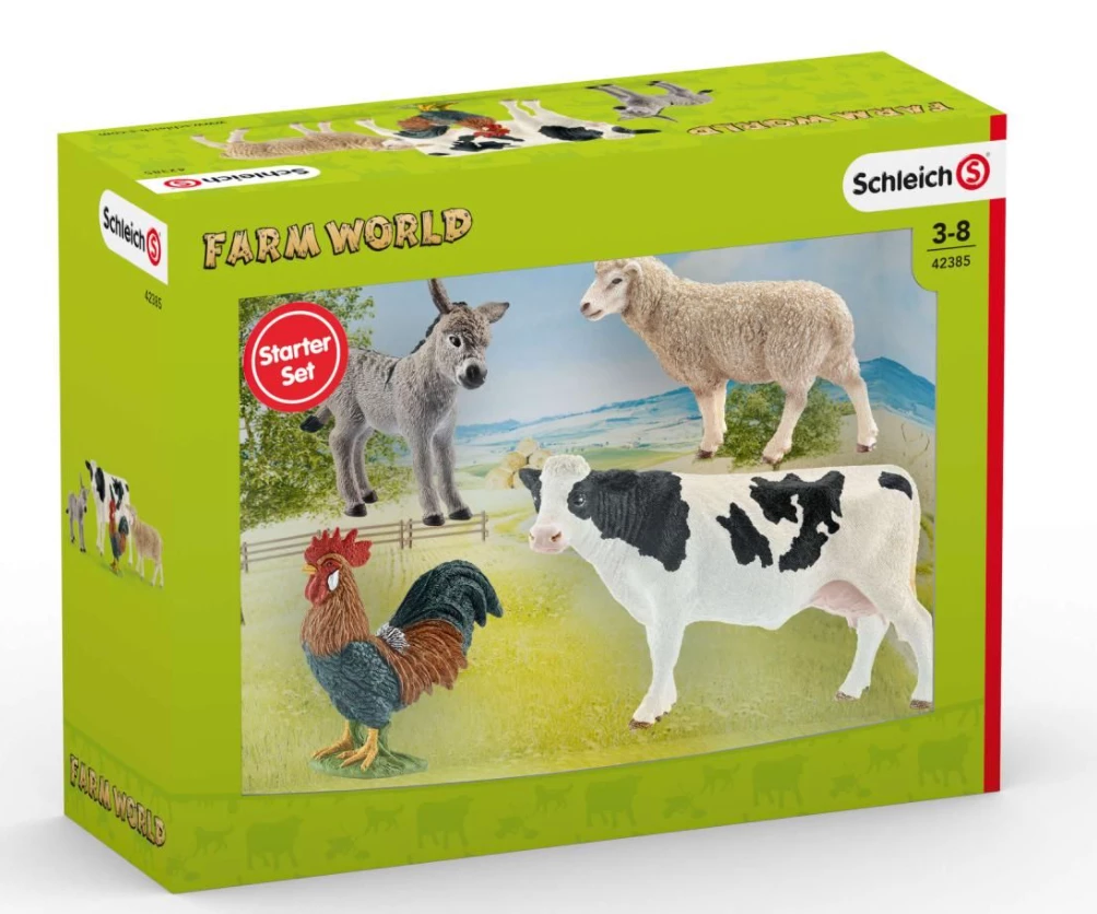 Children become acquainted with the most well-known farm animals with the Farm World Starter Set. The life-like Schleich animals with elaborate detail stimulate children to play creatively, allowing them to come up with their first imaginative farm stories.