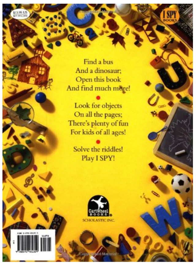 Acclaimed I Spy creators Walter Wick and Jean Marzollo use everyday objects to enhance intellectual discovery.From a crowded blackboard to a dinosaur display, readers can examine the different objects, solve the picture riddles, and become an I Spy detective!A perfect fit for STEAM curriculum.