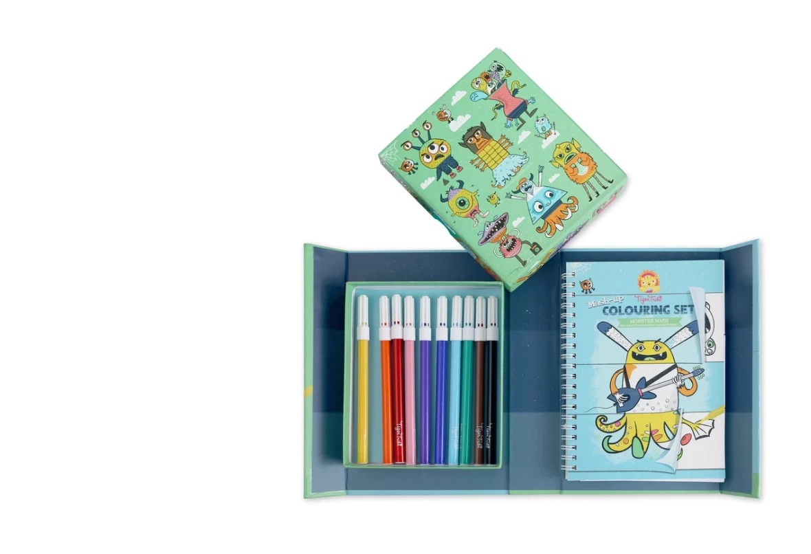 Let your child be their own Frankenstein! The Monster Mash Coloring Set opens up a world of kooky creatures for your little one to create. There are 32 individual monsters to color in, and hundreds of different mashups to explore! Kids can even draw whatever monstrous heads, bodies, and legs they can think of on the blank pages provided. This premium kit is designed for portable play, packaged in a sturdy, compact magnetic sealed box. Perfect to keep the little ones engaged while in the car, at a cafe, or when they have some quiet time at home.